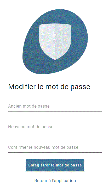 Vous devez renseigner votre ancien mot de passe et définir votre nouveau mot de passe. Celui-ci doit respecter les contraintes de sécurité suivantes 8 caractères minimum, et au moins une minuscule, une majuscule, un nombre et un caractère spécial. Si vous ne vous rappelez plus votre mot de passe actuel, vous devez dans ce cas, vous déconnecter de l'application et utiliser la procédure de mot de passe oublié.