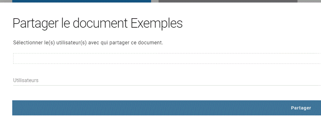 Cliquez dans la zone utilisateurs ou commencez à saisir l'adresse email des personnes avec qui vous souhaitez réaliser le partage. En cliquant sur Partager, cela fera apparaitre dans l'interface des personnes votre document.